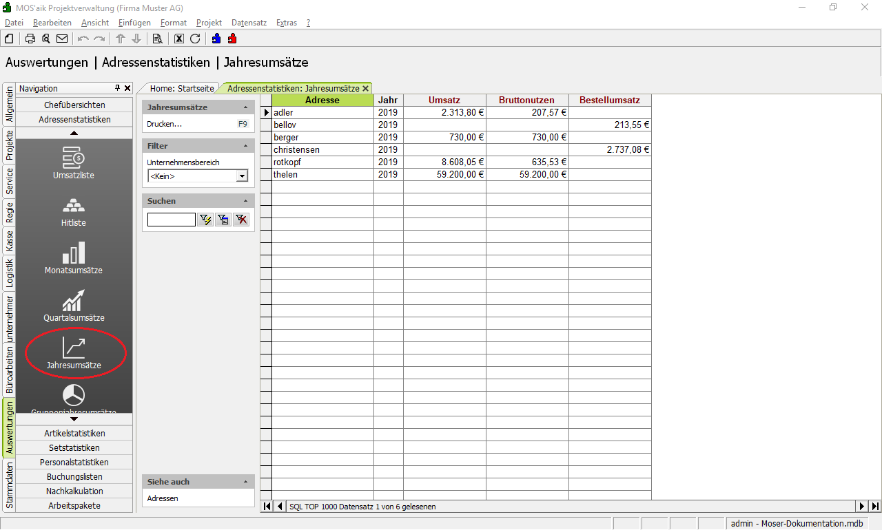 Jahresumsätze Hier sehen Sie eine Übersicht Ihrer Jahresumsätze zu den Kundenadressen. |