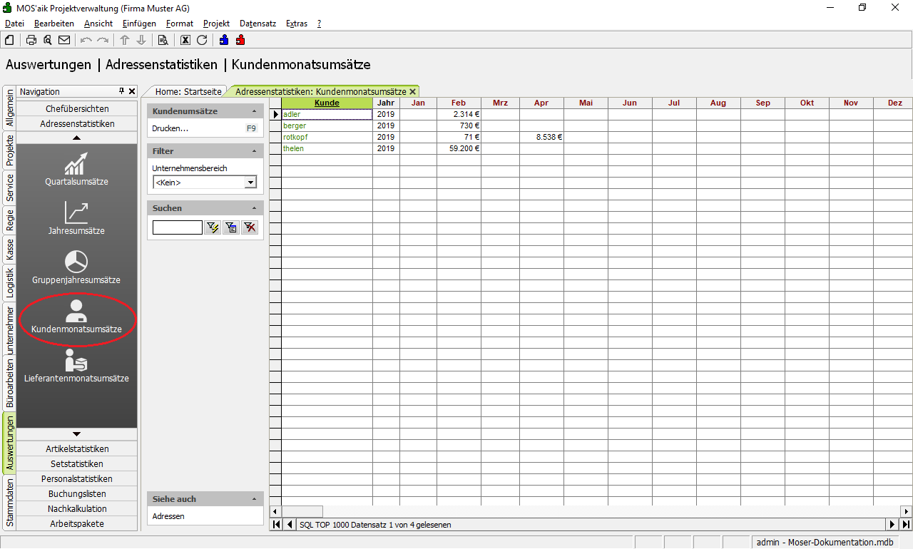 Kundenmonatsumsätze Hier sehen Sie eine Übersicht Ihrer Kundenmonatsumsätze. |