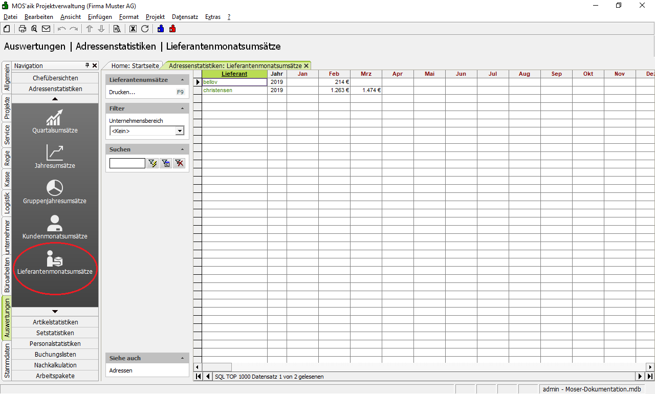 Adressenstatistiken werden im Ordner Auswertungen | Adressenstatistiken abgerufen.