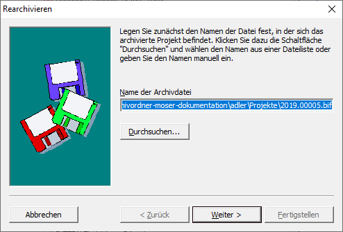 Für die spätere Rearchivierung archivierter Projekte ist es wichtig, dass