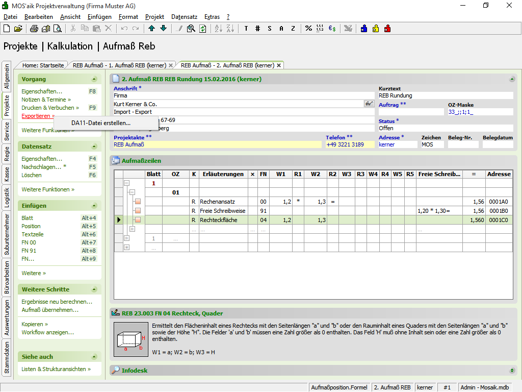 Nach Export des Aufmaßes in eineDA11-Datei:Abbildung 2.56. REB Aufmaß (DA11)