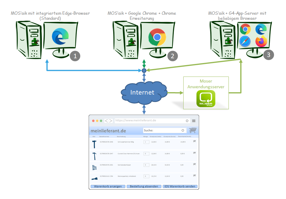 Zur Kommunikation mit den Lieferantenportalen stehen in MOS'aik verschiedene Möglichkeiten zur Verfügung: