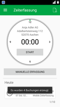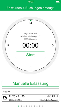 Sobald diese an einem späteren Tag angehalten wird, werden für jeden erfassten Arbeitstag automatisch separate Buchungen erstellt.