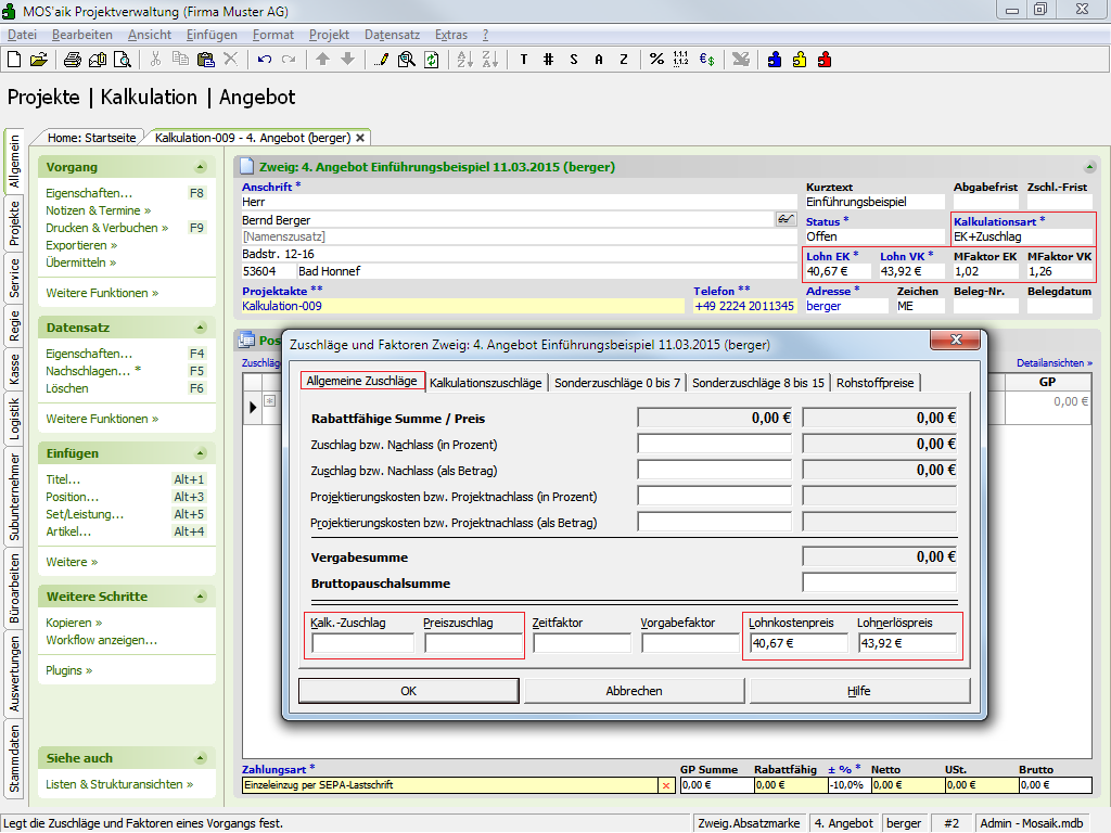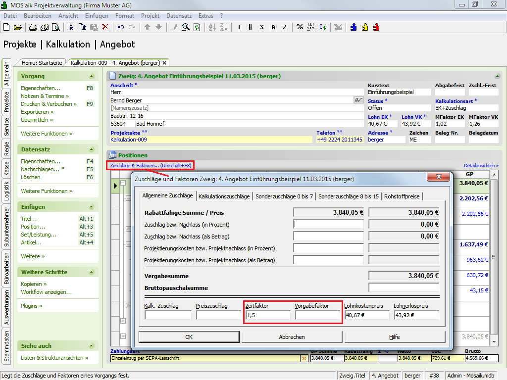 Angebot, Auftrag). Im Vorgangskopf bzw. dem Dialog Zuschläge & Faktoren ... (Umschalt+F8)