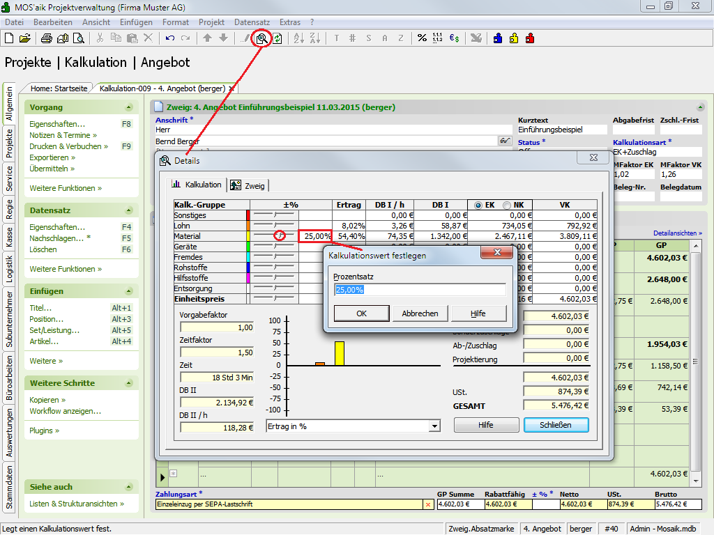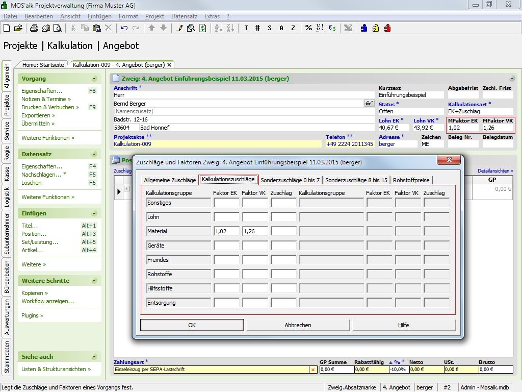 Bevor die vielfältigen Möglichkeiten der Kalkulation mit MOS'aik vorgestellt