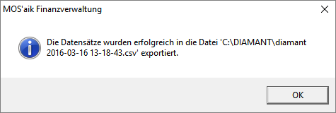 Die erstellte Datei können Sie an Ihr Diamant Finanzbuchhaltungsprogramm übergeben.