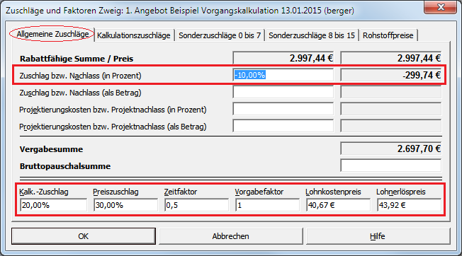 Abbildung 6.2. Beispielangebot: Zuschläge & Faktoren