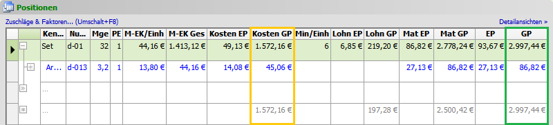 Tipps zu hilfreichen Kalkulationsansichten finden Sie unter Abschnitt 4.4, „Nützliche Kalkulationsansichten“.Die Ermittlung der Kosten- und Verkaufspreise wird nachfolgend erläutert.