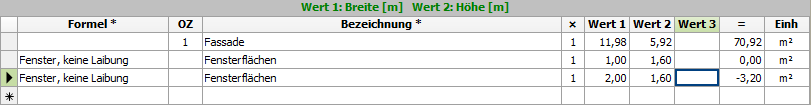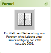 Dann wählen Sie z.B. als Formel „Fenster, keine Laibung“ (Abzug der Fensternische ohne Laibungen).
