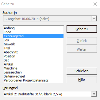 Nachschlagen einer Information bzw. eines Datensatzes (gemäß dem eingestellten Feld, siehe auch Strg+L). |