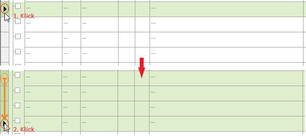 Markieren mehrere aufeinanderfolgende Datensätze, d.h. alle Datensätze vom ersten angeklickten bis zum letzten (2. Klick):