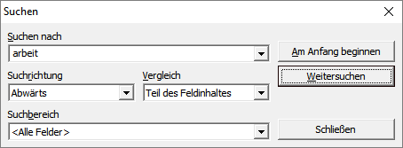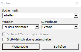 Suchen von Datensätzen und Texten (vgl. Strg+F):