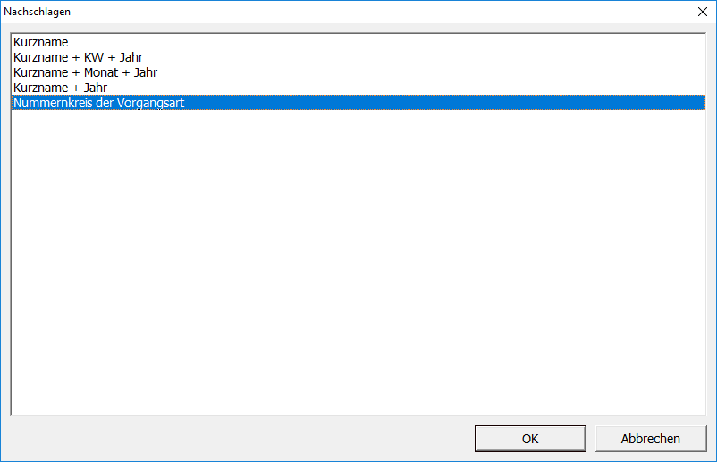 Über diesen Punkt kann gesteuert werden, wie die Projektakte für die Vorgangsarten Warenzugang und Lieferschein benannt wird.