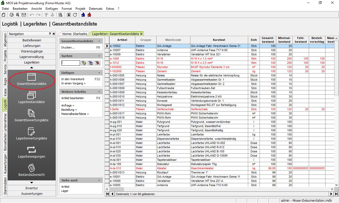 Abbildung 2.1.Logistik | Lagerlisten | Gesamtbestandsliste