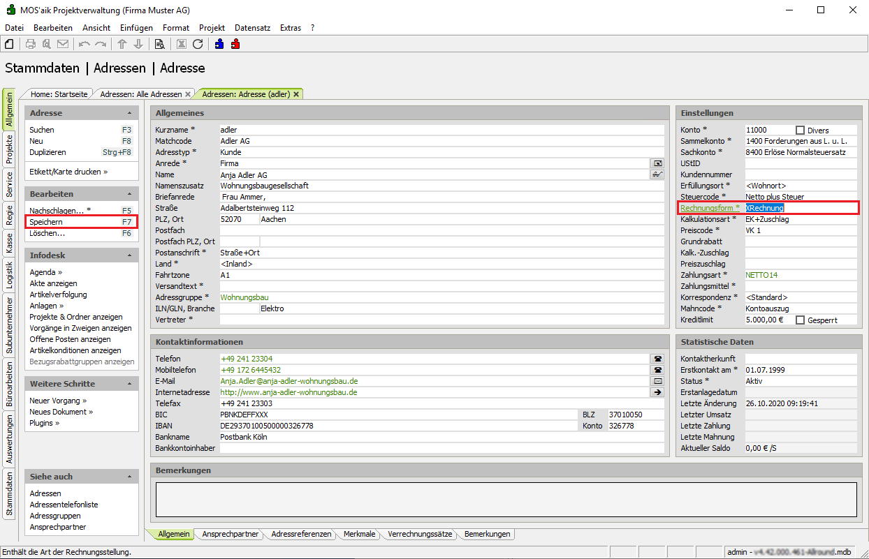 SpeichernF7 ab:Abbildung 3.1. Adresse und Rechnungsform