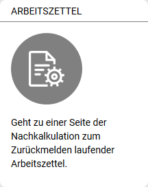Im Bereich finden Sie Funktionen zur Rückmeldung von Arbeitszetteln und eine Übersicht der Kostenstellen.
