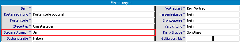 Bei allen DATEV-Automatikkonten (oder auch eigenen, die als solche genutzt werden sollen) muss zukünftig neben der Zuordnung der Steuerart zum jeweiligen Sachkonto auch ein "Steuerautomatik"-Kennzeichen gesetzt sein. Dies ist eine wichtige Voraussetzung dafür, dass der Saldo des Kontos als Bemessungsgrundlage in der Umsatzsteuer-Übersicht erscheint!