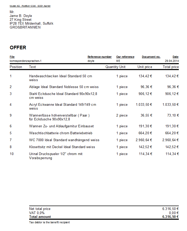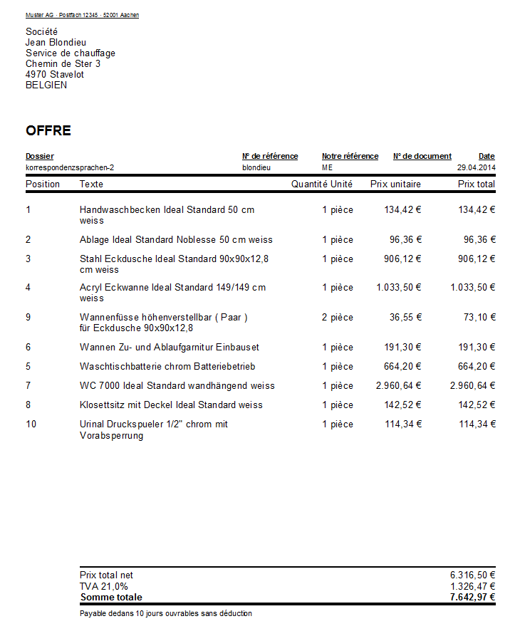 Um also z.B. ein Angebot, eine Bestellung oder eine Rechnung in einer verfügbaren