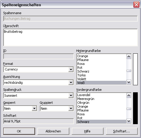 Im Feld Spaltendruck wählen Sie Ausgeblendet, um die Spalte im Ausdruck zu entfernen