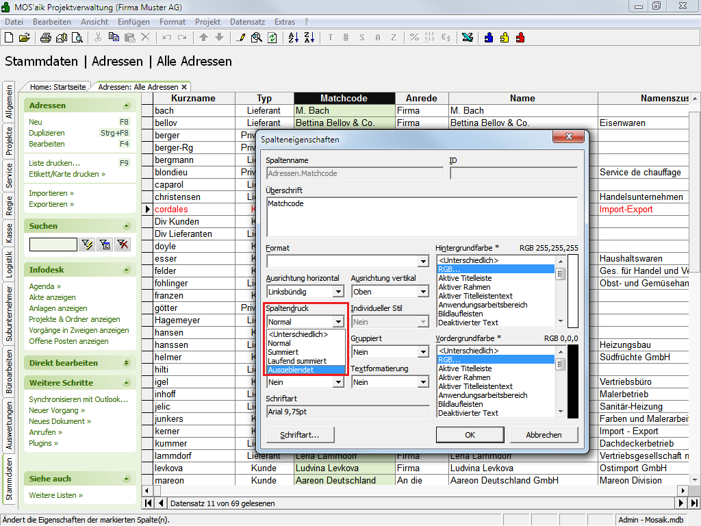 Falls Sie die gesuchte Spalte in der Liste nicht finden oder eine neue MOS'aik-Spalte einblenden möchten lesen Sie in Ansicht restaurieren, wie Sie dazu vorgehen.