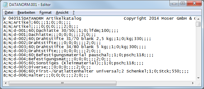Bezüglich des Satzbaus handelt es sich bei DATANORM um ein CSV-Format.