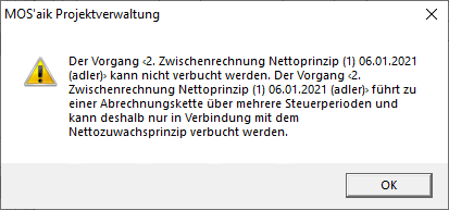 Beachten Sie, dass für diese Aktion ggf. weitere relevante Vorgänge berücksichtigt und eventuell verbucht und/oder abgerechnet werden können!