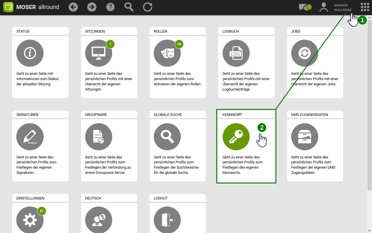 28.2.2. Wie kann ich mein Kennwort ändern?