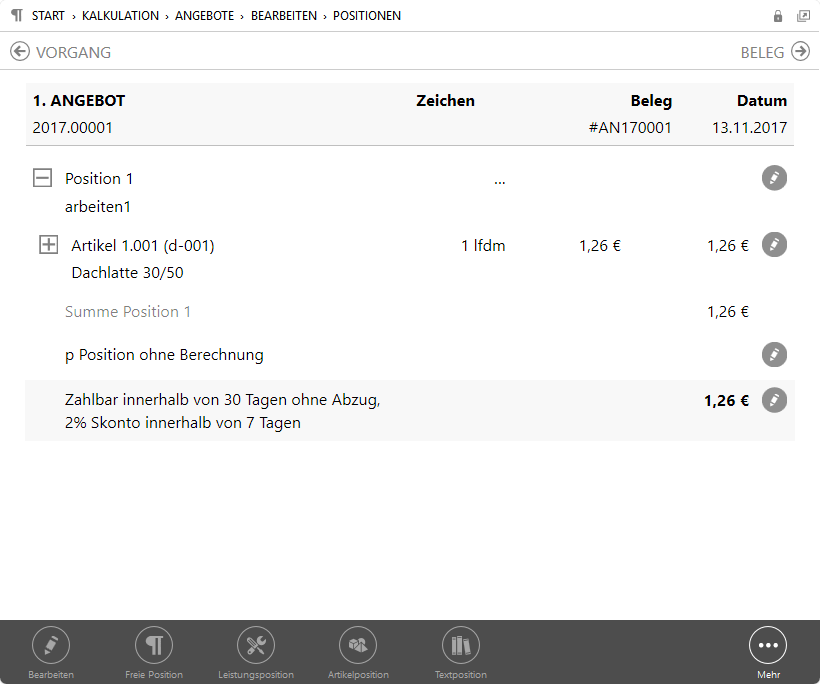 Über das responsive Design wird für geringe Bildschirmhöhen (<900 Pixel) der Adresskopf in der Positionsansicht von Vorgängen ausgeblendet. Im Fall von ausreichend großen Displays kann der Adresskopf außerdem über das manuell aus- und wieder eingeblendet werden, indem man in der Positionsansicht eines Vorgangs die Kurzansicht auswählt: