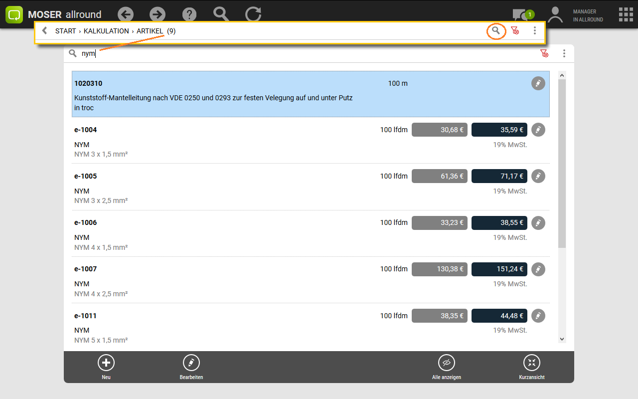 28.1.12. Wie verwendet man das lokale Suchfeld?