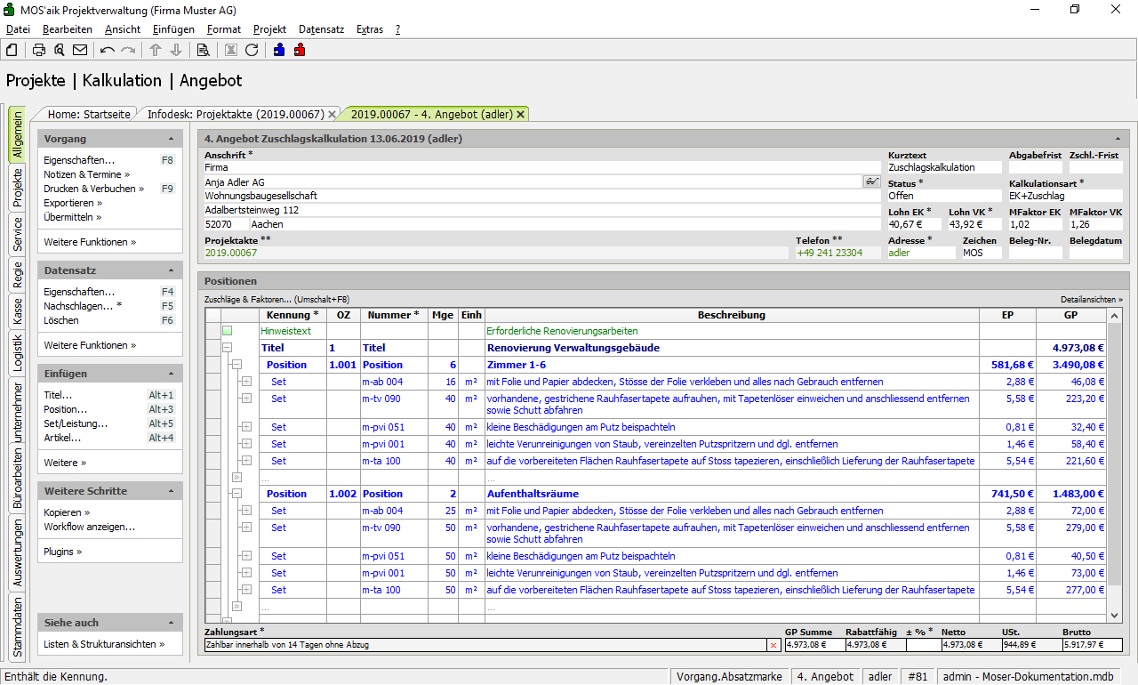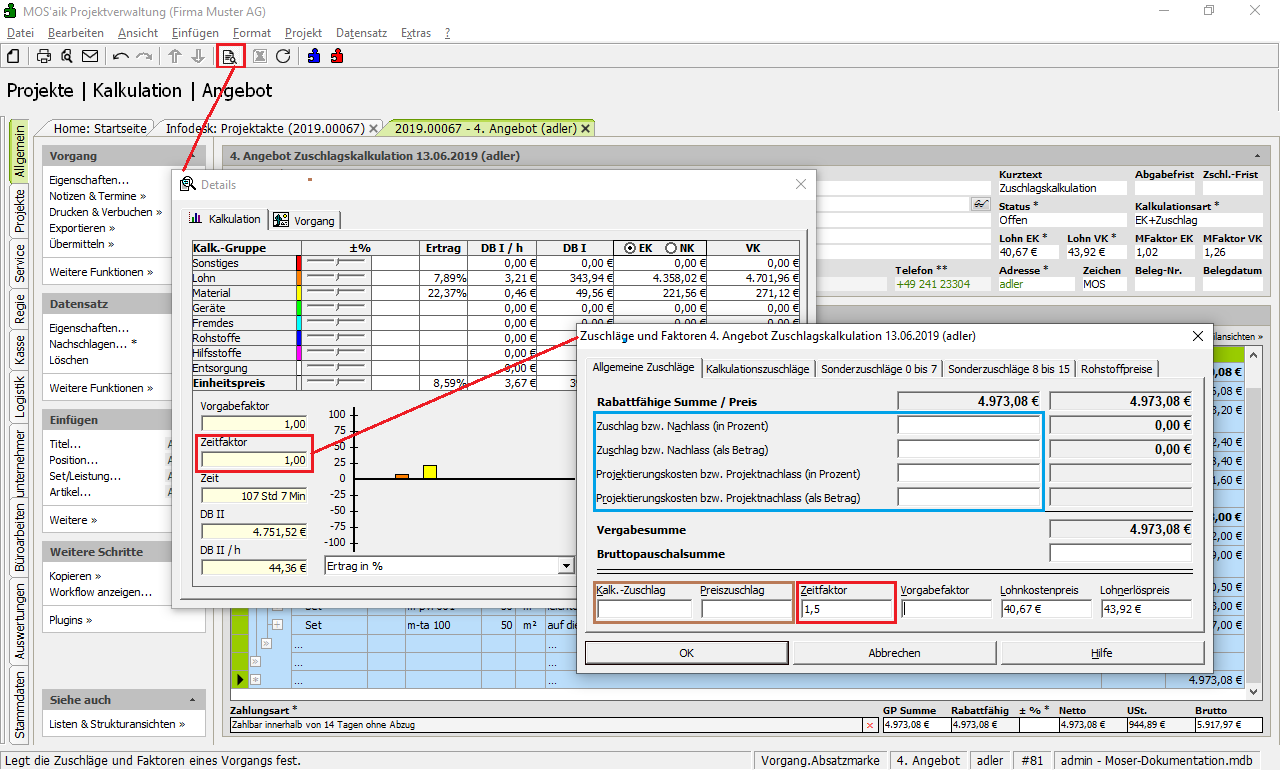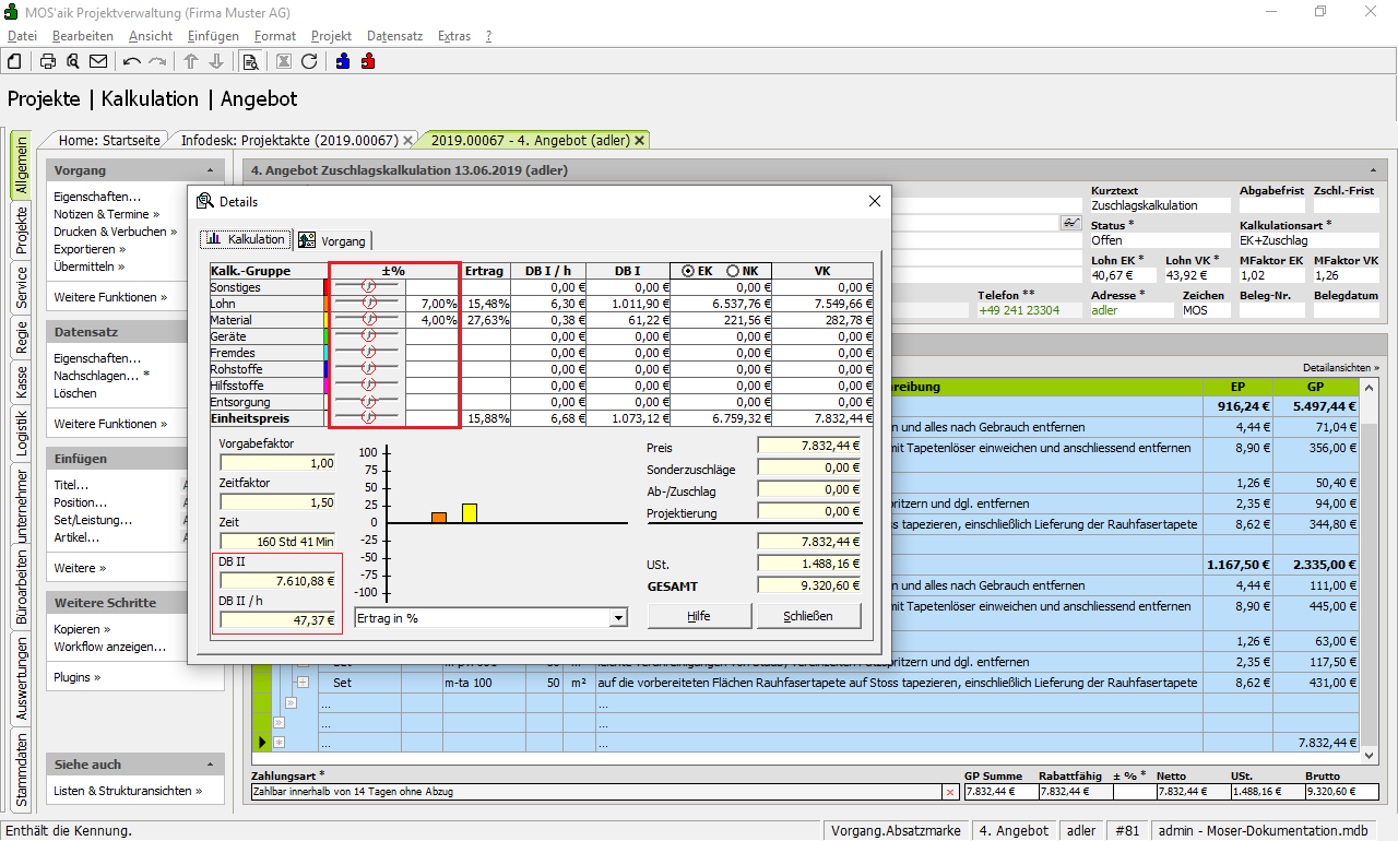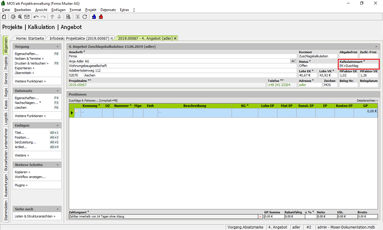 Das folgende Beispiel beschreibt die Kalkulation eine Angebots mithilfe der Zuschlagskalkulation: