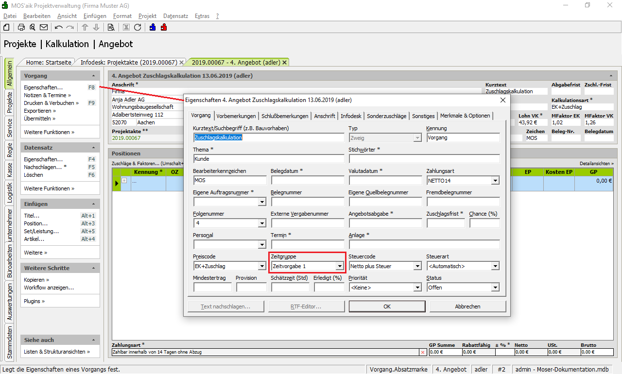 Als Voraussetzung für die Verwendung der Zuschlagskalkulation sollten folgende Einstellungen vorhanden sein bzw. überprüft werden: