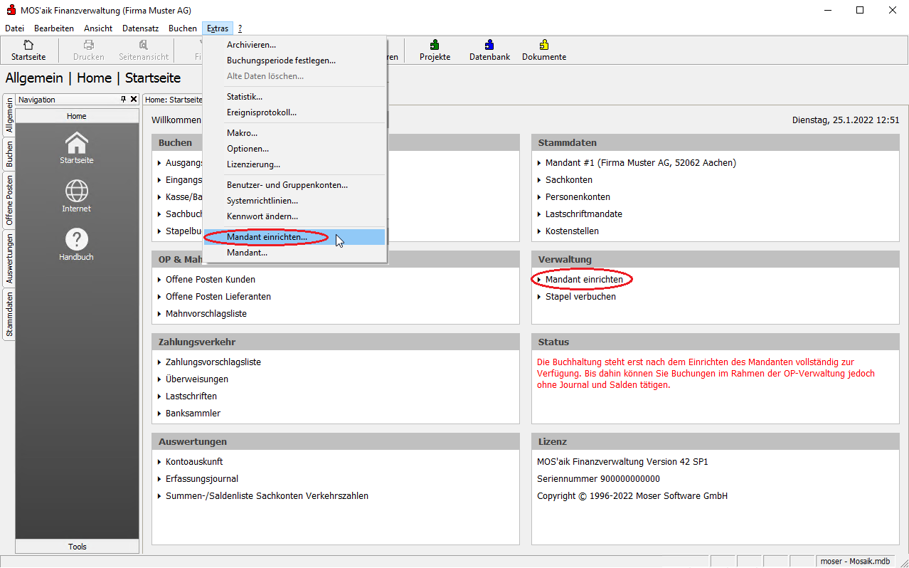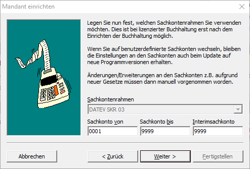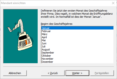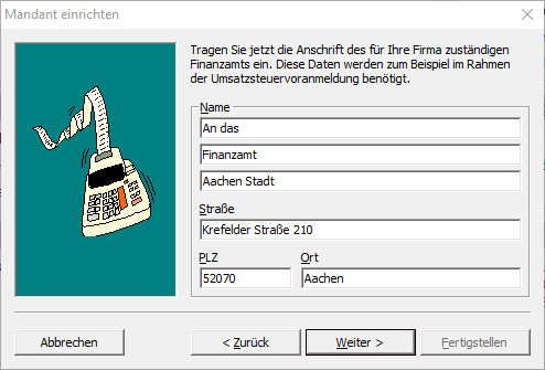 Beim Einrichten des Mandanten in der MOS'aik-Finanzverwaltung