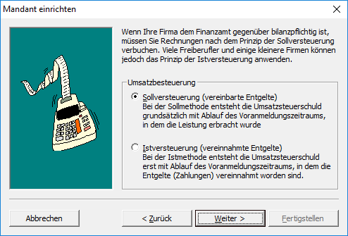 Die Mandanteneinrichtung sollte erst nach Absprache mit dem Steuerberater erfolgen!