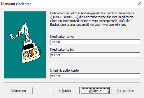 Kontenbereich für Kreditoren