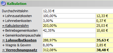 | Lohnfaktor: | Dieser Faktor erhöht die Lohnselbstkosten. |