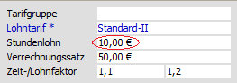 | Stundenlohn: | Abweichend vom Durchschnittslohn des Lohntarifs kann eine