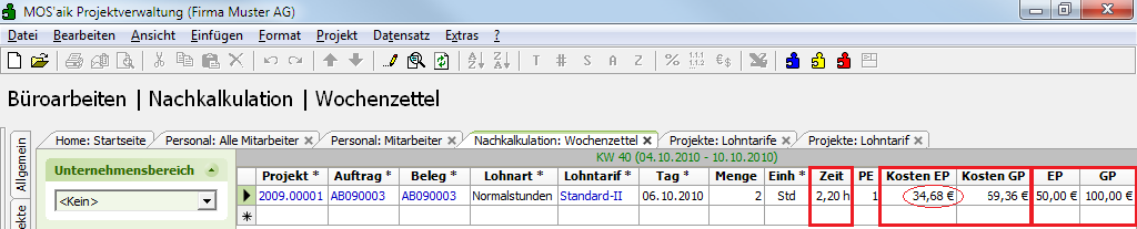 Für die Lohnnachkalkulation wird grundsätzlich der beim jeweiligen Mitarbeiter hinterlegte Lohntarif herangezogen!