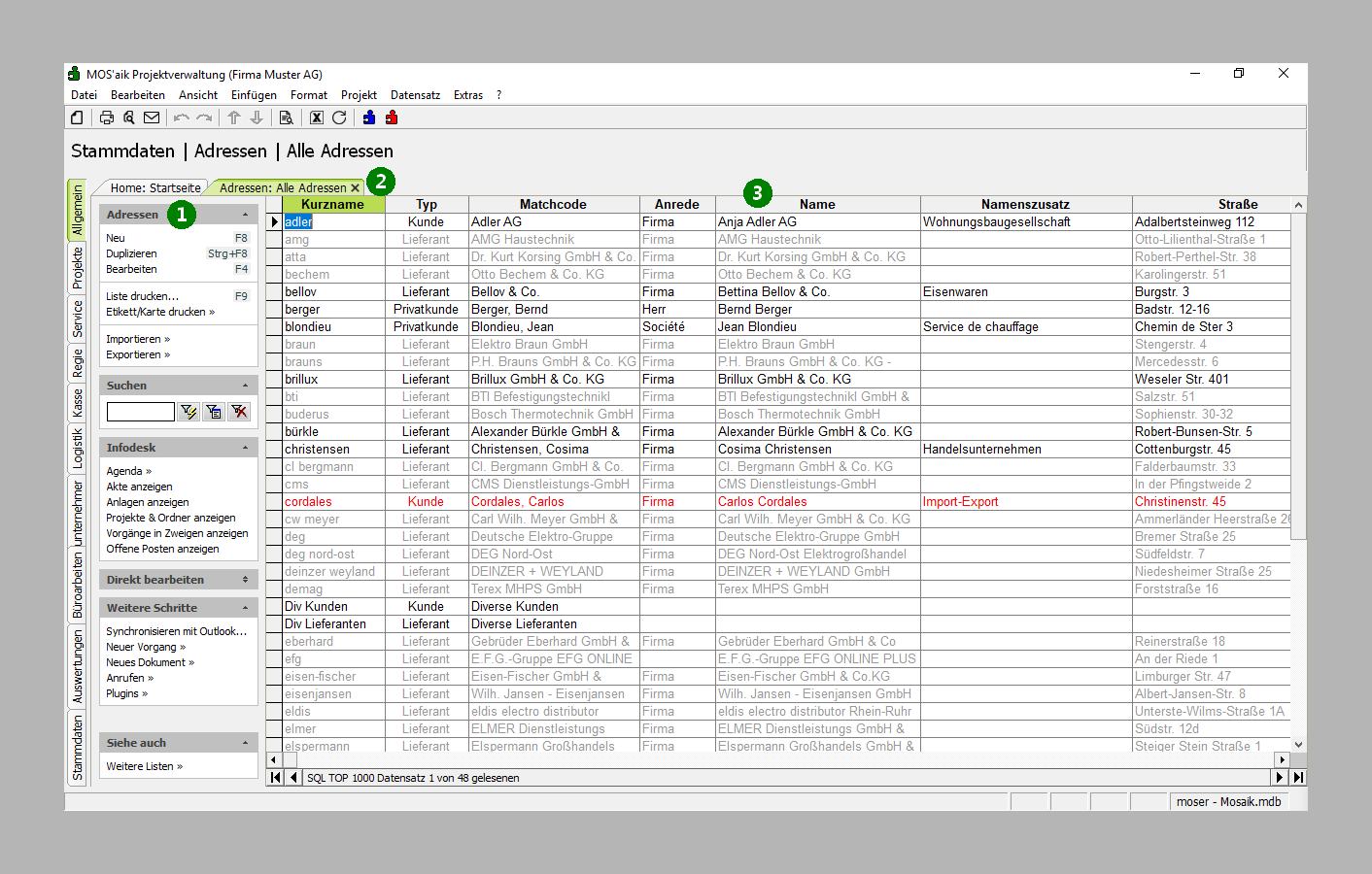 Tabellenbereich Im Tabellenbereich können Sie auf alle Daten zugreifen, diese durchsuchen, die angezeigten Datensätze nach beliebigen Kriterien filtern, Spalten anpassen usw. |