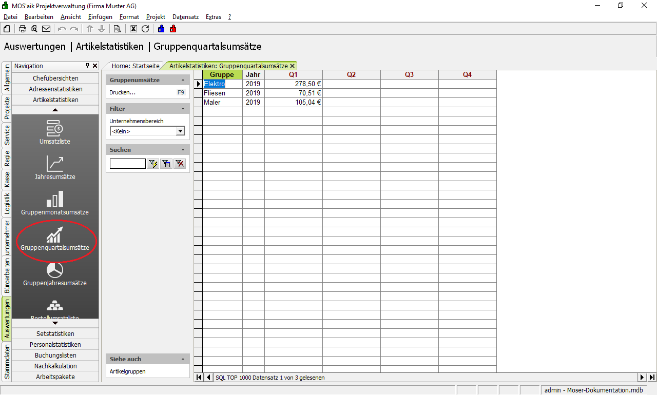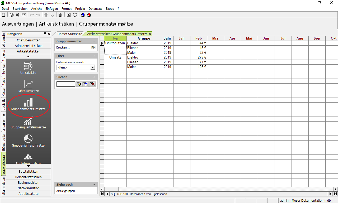 Gruppenmonatsumsätze |
