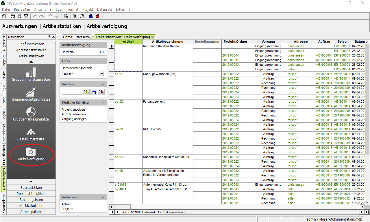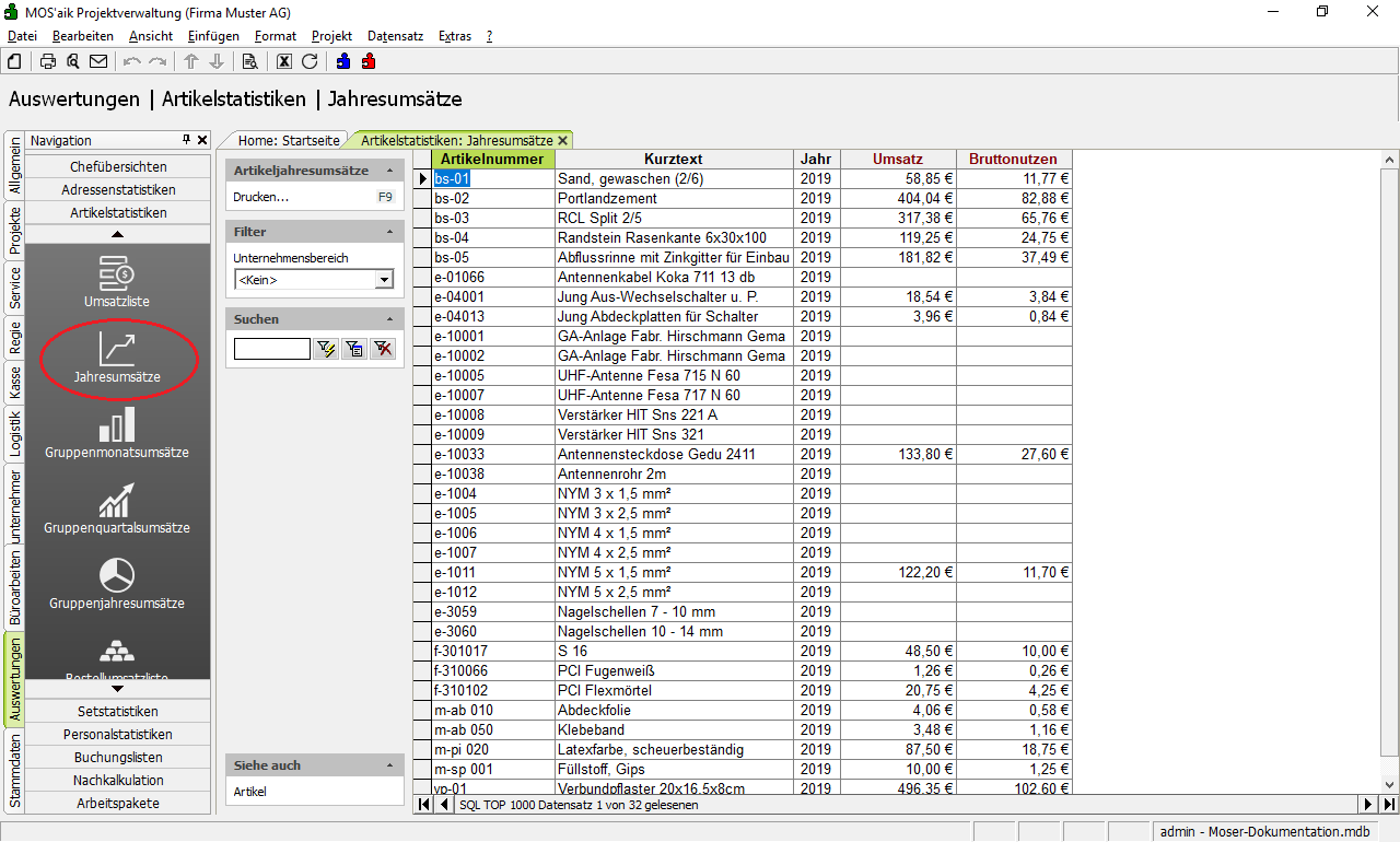| Übernahme aus Abschnitt "Datenverwaltung > Stammdaten > Artikel > Artikellisten und Auswertungen" (5.4.2.6) | ||