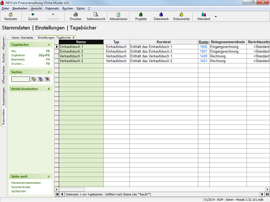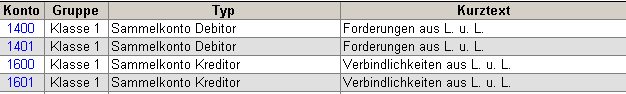 In den Tagebüchern Einkauf und Verkauf sind Sammelkonten als feste Konten hinterlegt: