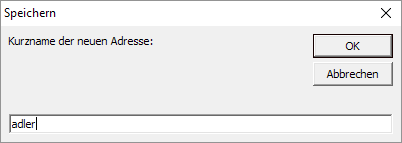 Anschließend muss ein eindeutiger Kurzname für die Adresse angegeben werden, unter