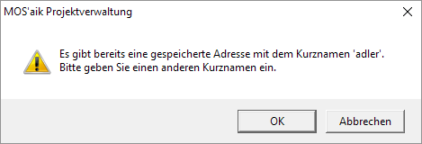MOS'aik Stammdaten gespeichert wurde, ist der vergebene Kurzname