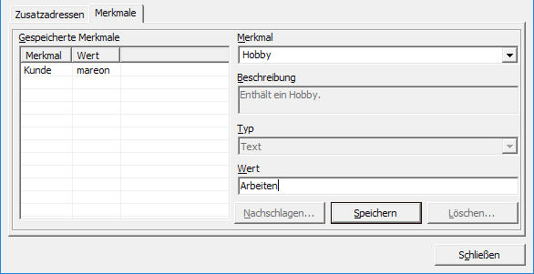 Wie im Eigenschaftendialog können die Merkmale hinzugefügt und entfernt