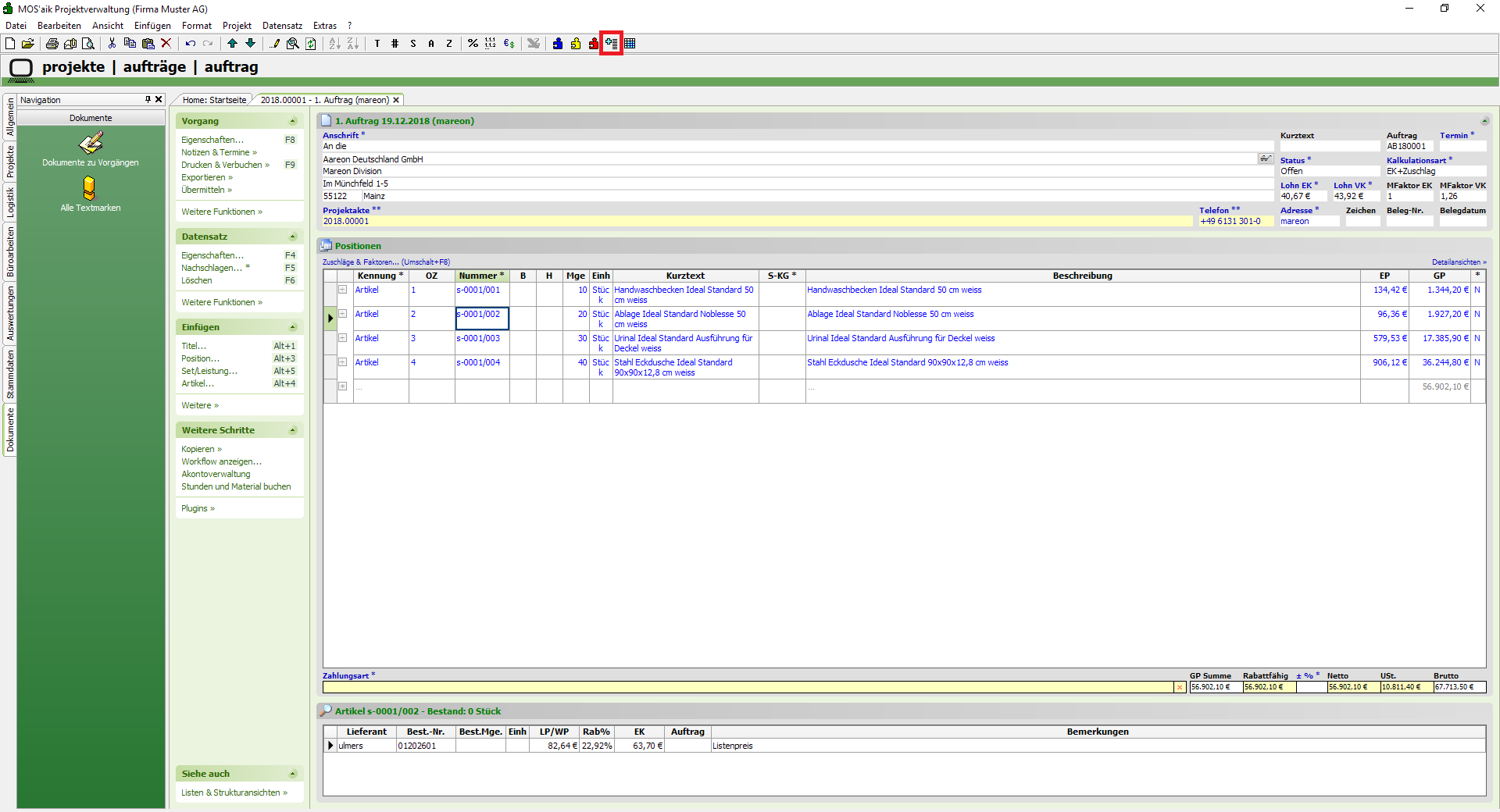 Eine Adresse aus den MOS'aik Stammdaten kann dem Vorgang über