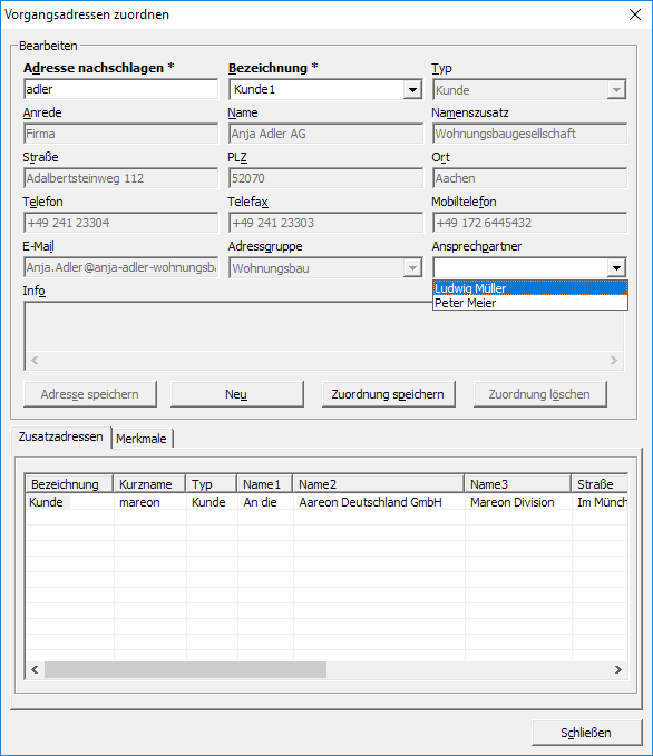 zu jeder Adresse ein Ansprechpartner ausgewählt werden kann, ist das Feld