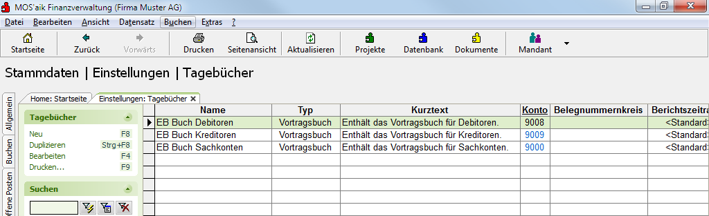 Den EB-Tagebüchern (Eröffnungs-Bilanz-Tagebücher) sind Vortragskonten als feste Konten zugeordnet: