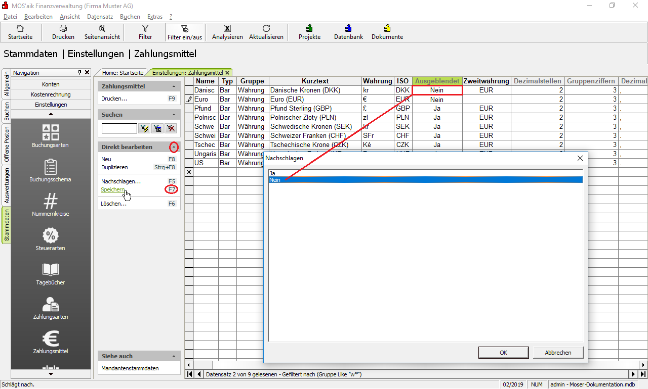 Währung(en) vorbereiten Währungen werden als Zahlungsmittel geführt. Dabei sind alle Währungen mit Ausnahme des Euro standardmäßig ausgeblendet. Blenden Sie die als Basiswährung benötigte Währung dazu wie folgt ein: