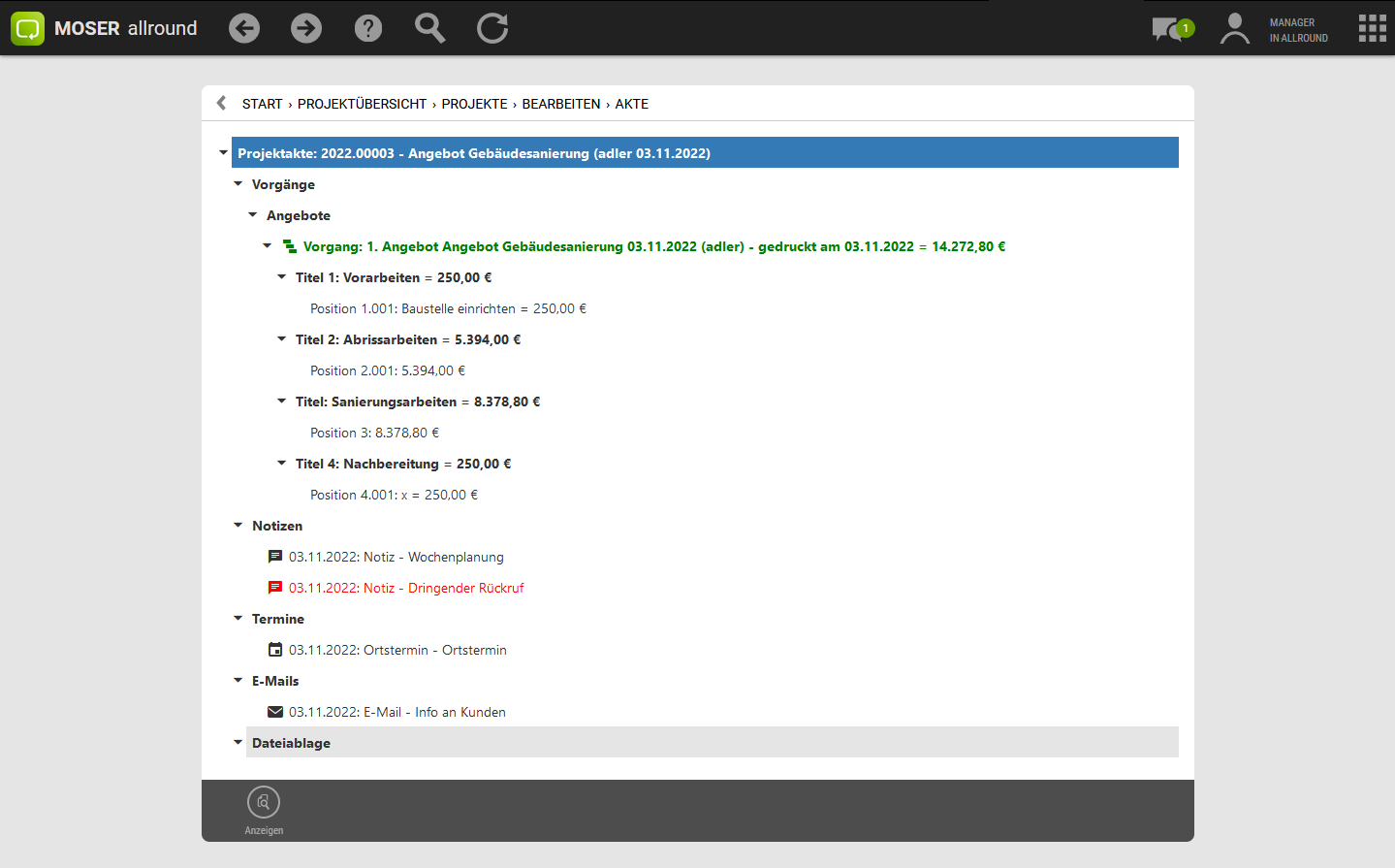 Über das Symbol öffnen Sie eine Projektakte: Abbildung 17.2. Projektakte