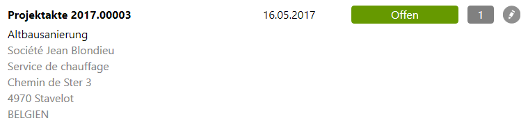 Durch Auswahl des Symbols wird das zugehörige Projekt zur Bearbeitung geöffnet. |